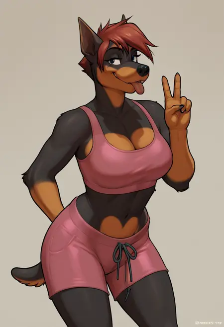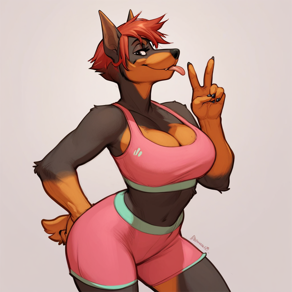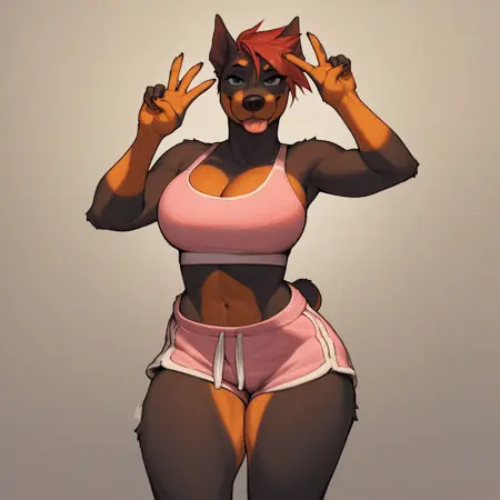 「Good Bitch」と題されたシリーズの、Meeshの旧キャラクターであるDeniseのLoRAモデル。この元気でタフガールなドーベルの美女は、大きな骨を投げられるのを待つ、本当の「Good Bitch」だ。