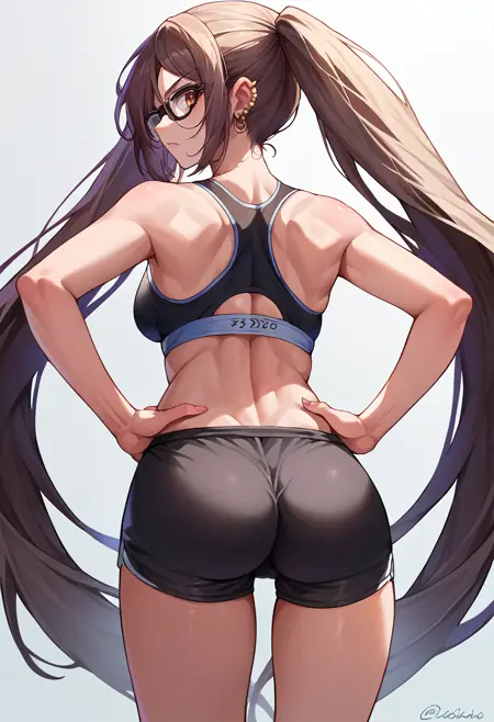AkutaHinako, very long hair, twintails, glasses, ear piercing