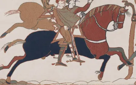 将生成不含关键词的内容,但最佳关键词应为描述开头的“bayeux, bayeux tapestry, an embroidered tapestry showing a”。
