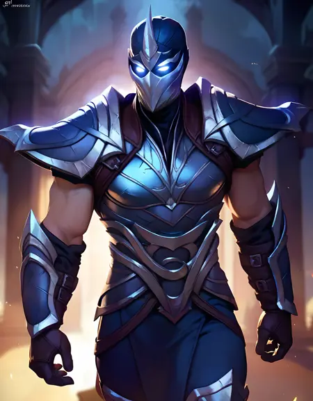 发光的眼睛,无瞳孔,头盔,面罩,单角