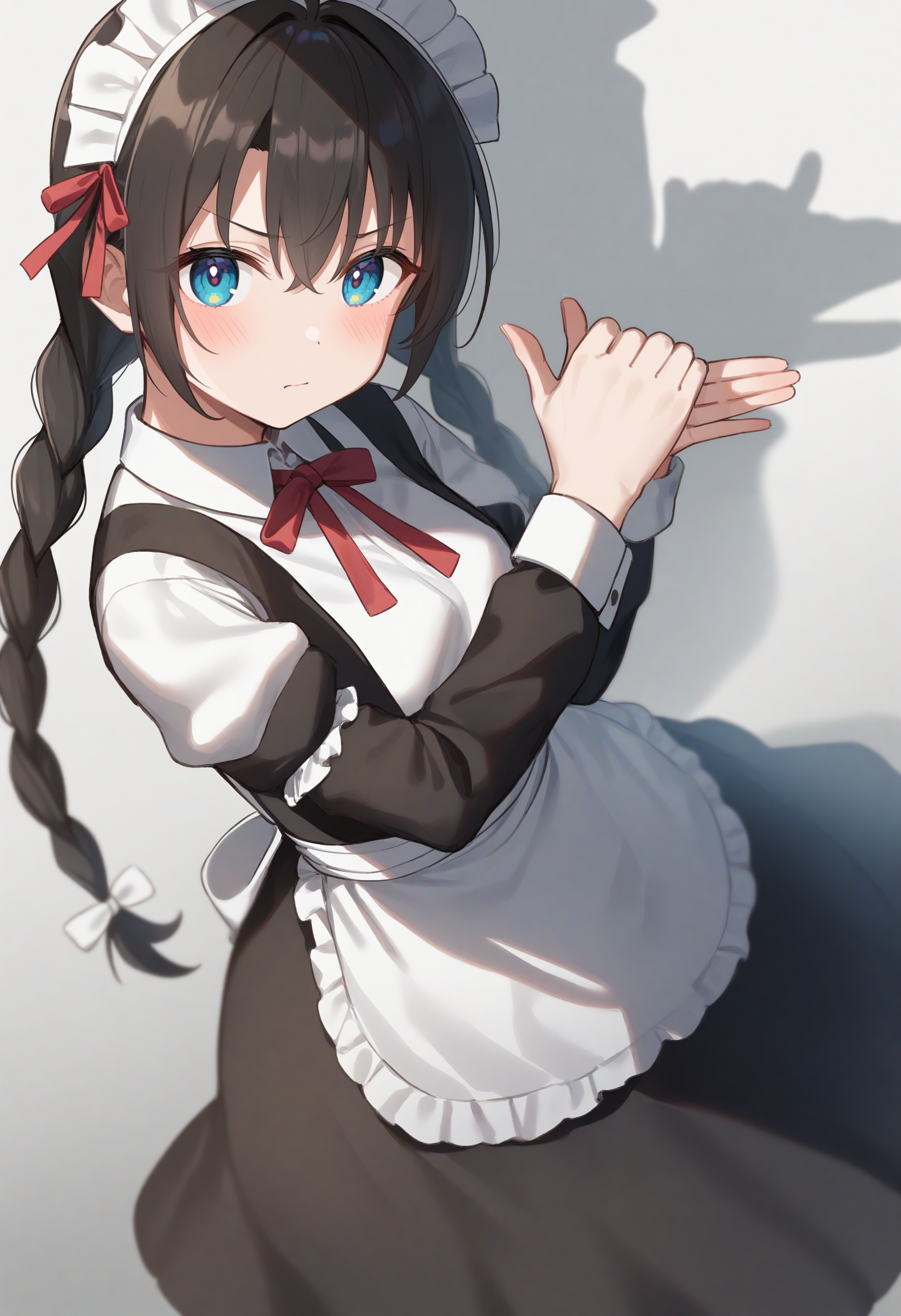 默认情况下,有时会出现只用一只手摆姿势的情况,建议加入 shadow puppet, own hands together, hands up 等关键词。