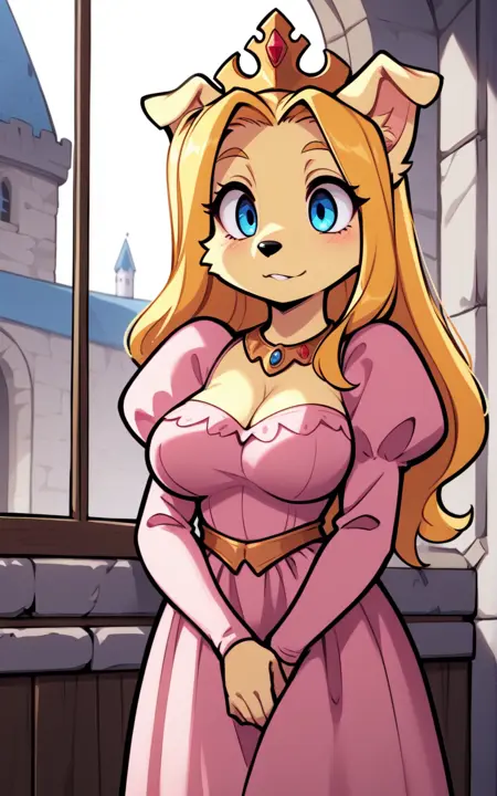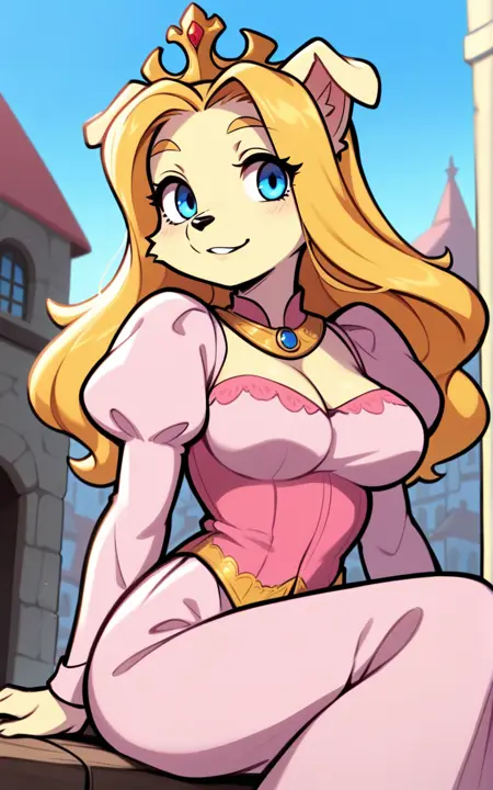 강화 태그: 긴 머리카락, 파란 눈, 금발, 동물 귀, 펄프, 펄프 여자, 개 귀, 개 소녀