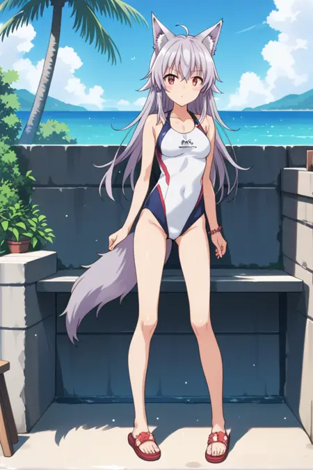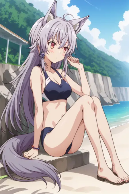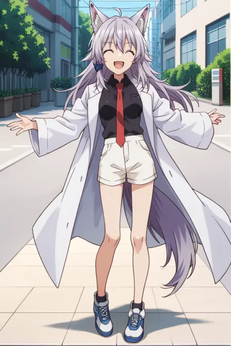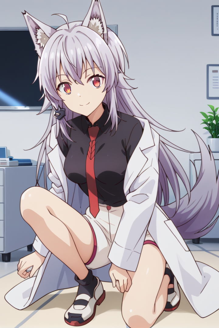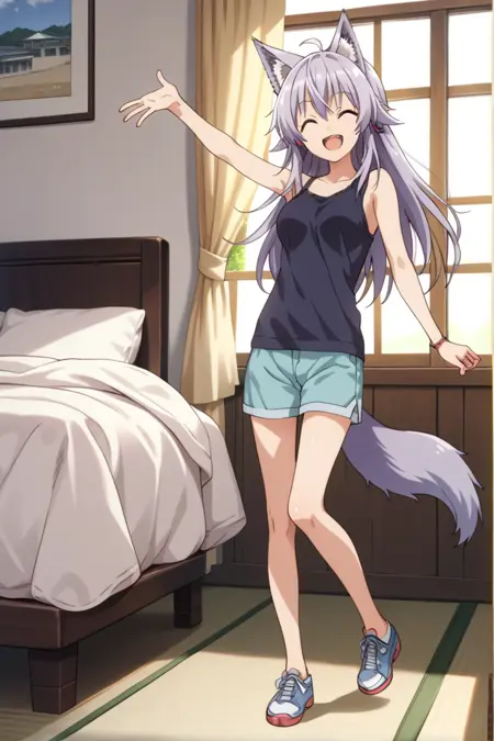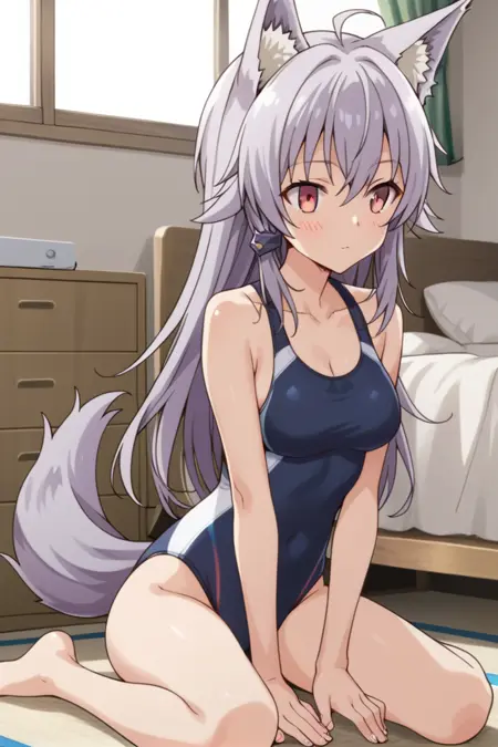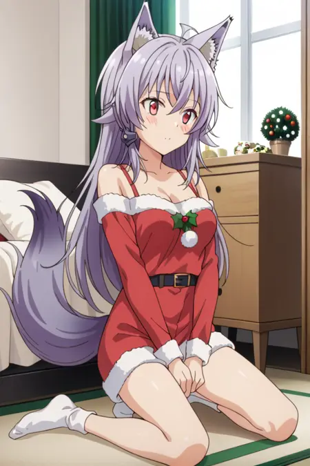 보라색 머리, 늑대 꼬리, 늑대 귀, 붉은 눈, 아호게