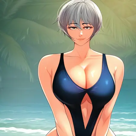 (( <lora:kang_ah-yung :1> , kang_ah-yung, beautiful dark brown eyes, clear eyes, bright pupils, beautiful eyes, beautiful silver hair, short hair, hair between eyes, bangs, huge and shaggy breasts, thin waist, wide hips, beautiful skin, natural beauty, extraordinary beautiful woman, attractive woman, super sexy woman, lustful body, sexy woman with seductive obscene body, sensual body, voluptuous body, sexy beauty, ))