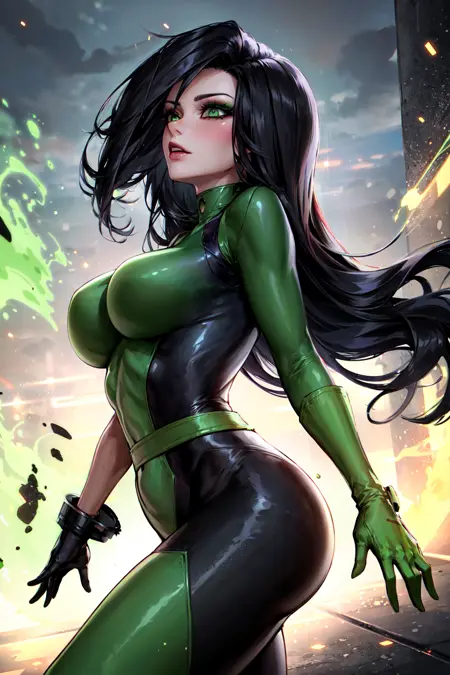 sh1, 초록색 눈, 장갑, 다채로운 바디슈트, 메이크업
