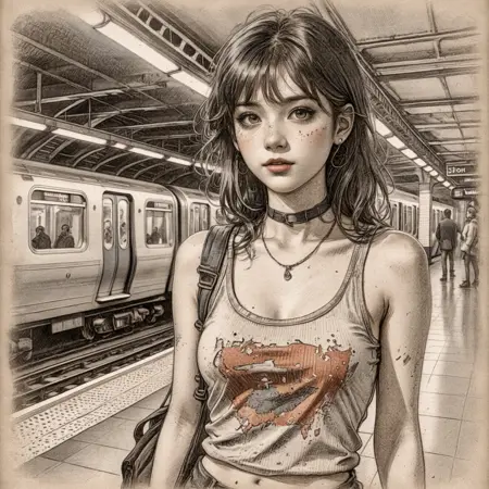 A vintage drawing style LoRA.