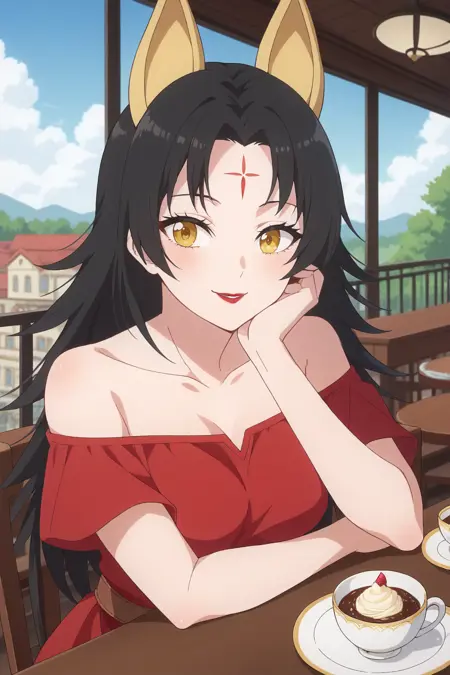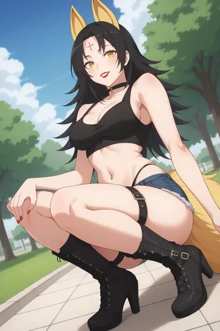 Triggers: KJOmagino, black hair, yellow eyes, forehead mark, long hair, parted bangs, animal ears,