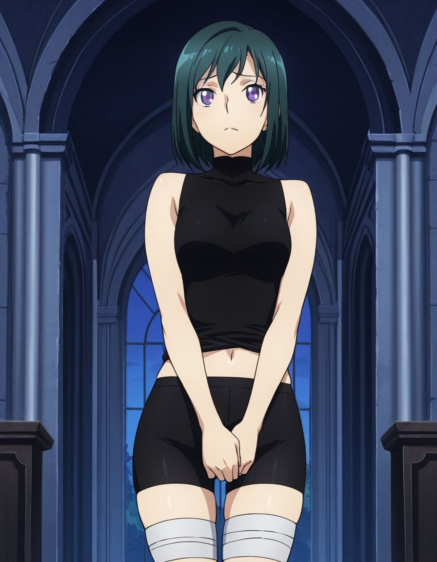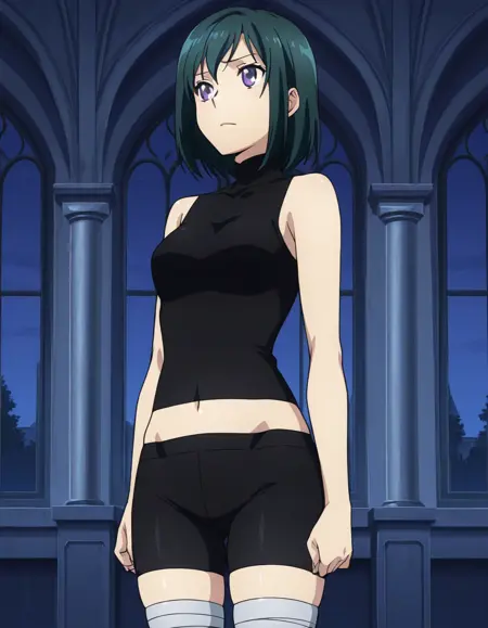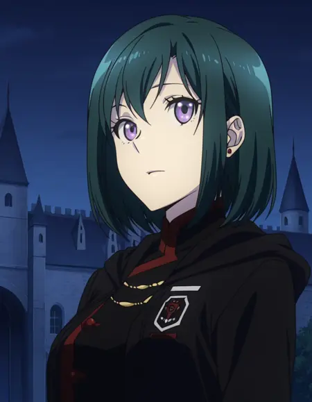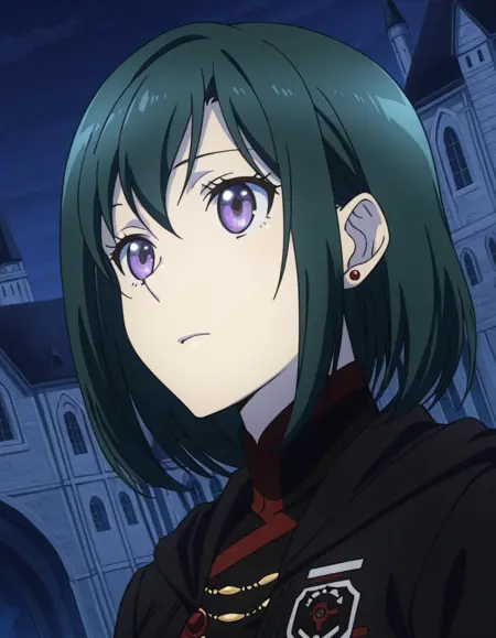 Lenalee Lee Hw, medium hair, dark green hair, purple eyes, medium breasts