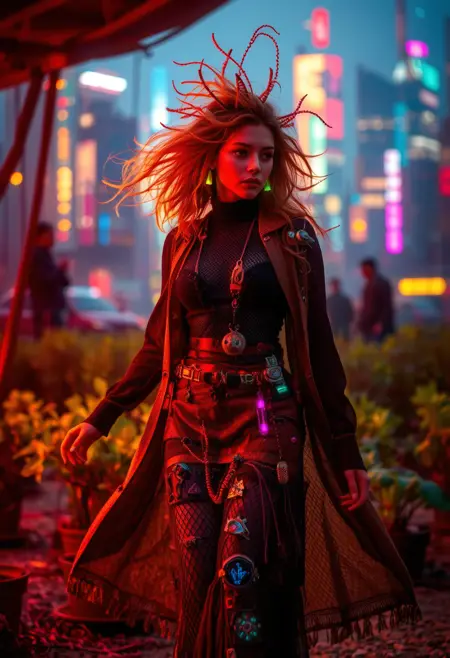 bioPunkはもう一つの高品質なLoRAです(1以上の強度でも品質が損なわれません——「上限値」は試していませんが、私は1で使用しています)。トリガーワードはもちろん「biopunk」です。このLoRA用の画像収集・作成に多くの時間を費やしました。このバージョンは画像プロンプトを使わず、単一の総合的な「biopunk」トリガーワードだけでトレーニングしました。