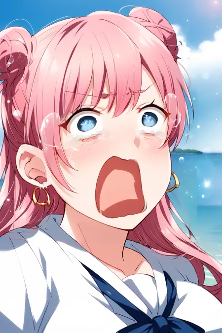 대부분의 시간 사용할 것 같은 키워드: 아카리 와타나베, 분홍색 머리, 긴 머리, 파란 눈, 귀걸이, 가슴, 네일페인트, | 그레이스케일, 단색, 망가 채색,