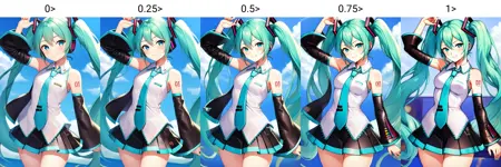 これらのサンプル画像には、通常使用する (masterpiece, best quality:1.2) と2つのネガティブエンベッディングが含まれていません。