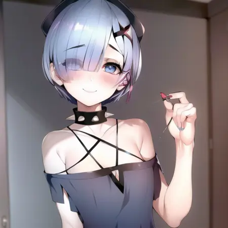 There were images of her without the crop top but with the strings, which means you can have her crop top but without the strings by specifying pentagram in the negative prompt.