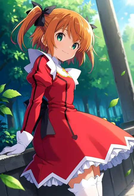 white_gloves, white_thighhighs, red_dress, red_shoes,