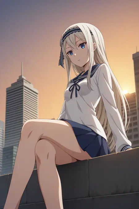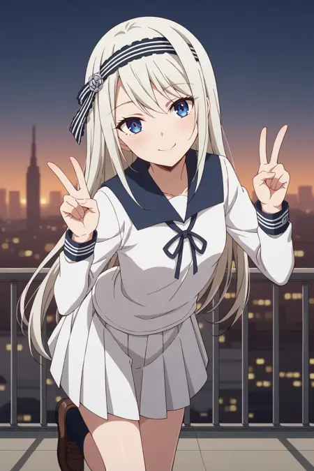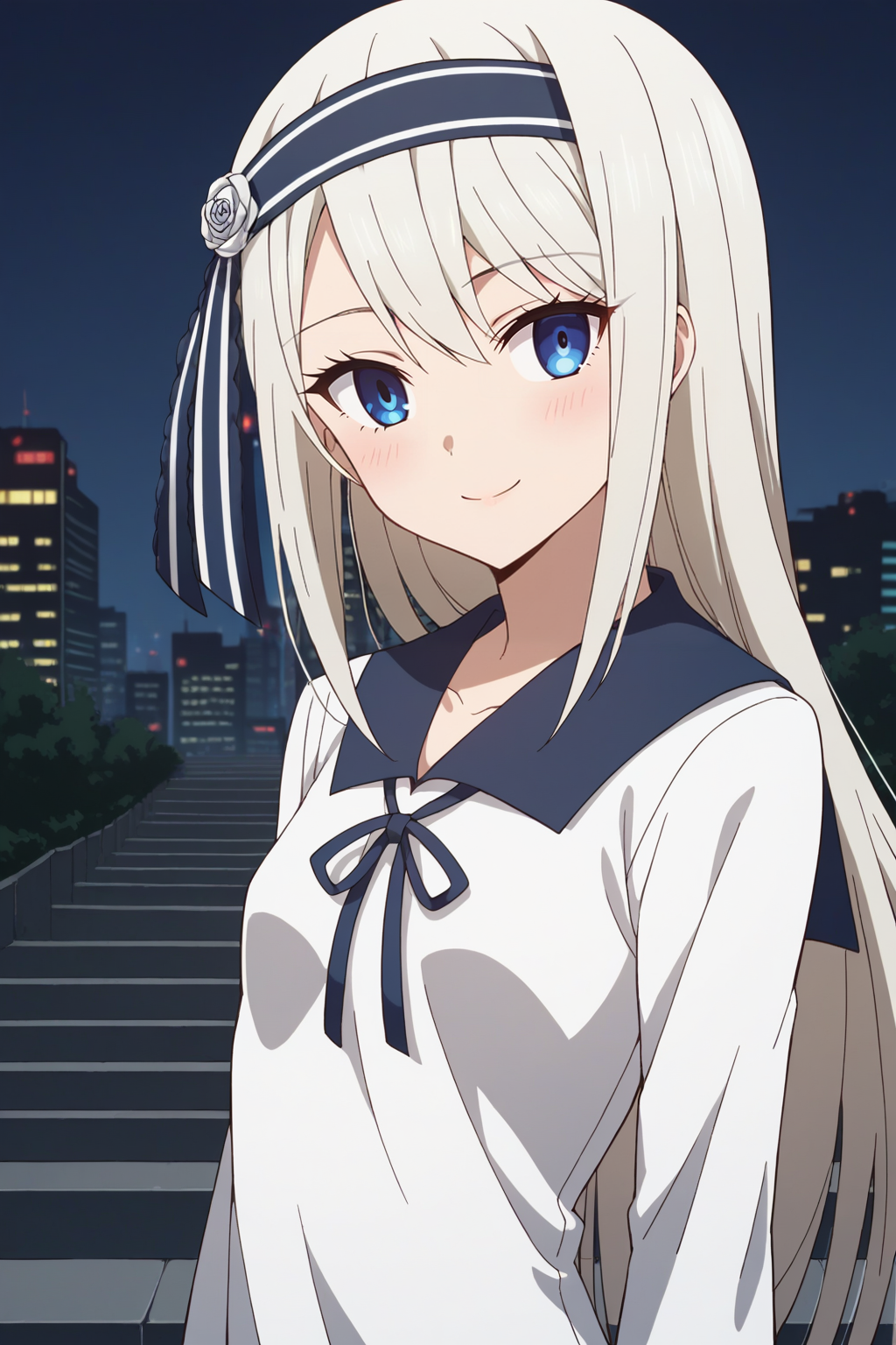 KJOkei, white hair, blue eyes, long hair, headband,