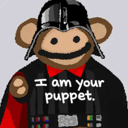 如果你希望生成类似比特币木偶收藏品的经典木偶形象,强烈建议在提示词中使用“puppet monkey”(木偶猴子)和“smiling”(微笑)或类似词汇。我将原始收藏图片标记为“simple mspaint style”(简单的画图风格)和/或“portrait illustration”(肖像插图)。以下是一个示例: