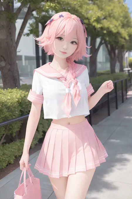 并非所有内容都需要添加,我只添加“白色衬衫,粉色领子,粉色裙子”就解决了问题