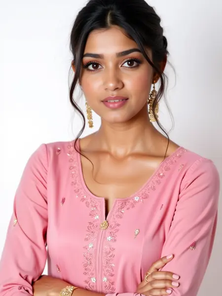 A LoRA that draws on the same data set as other Desi Coffee models produce women with Indian features and light skin tones.