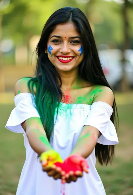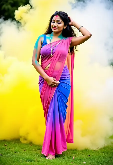 Holi (the festival of colors) celebrates the beginning of spring and the victory of good over evil according to traditional Indian lunar calendar system. This is held on the last full-moon day of the lunar month, the festival sees people smearing bright colors on Indian and South Asian communities inside and outside India. This LORA delivers the colorful essence of Holi in your AI artwork. It can produce both SFW & NSFW images and depending on your base model and prompting style you may more or less frequently come across NSFW images so use this LORA with care.