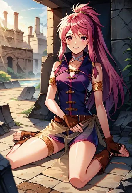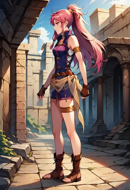 General prompts: MrsFE, pink hair, long hair, ponytail, sidelocks, pink eyes,