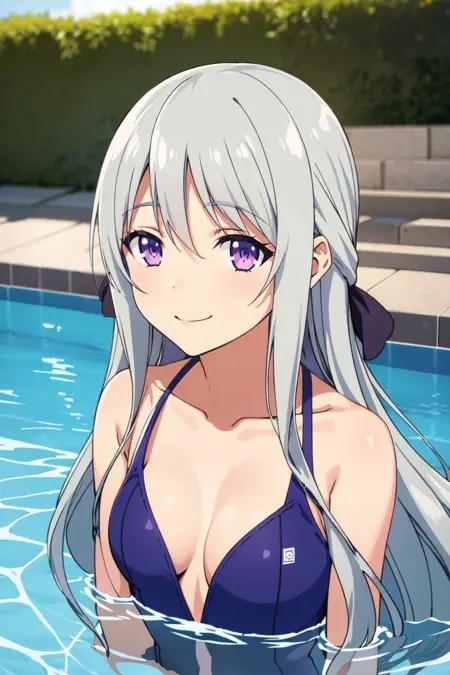 • 召唤她,请使用以下标签:shiina hiyori, 1girl, long hair, solo, red school uniform, purple eyes, jacket, bow, smile, looking at viewer, open mouth, white skirt, grey hair, ribbon, hair ribbon