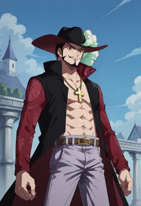 Pony: MihawkOP, 1boy, male focus, anime screencap,