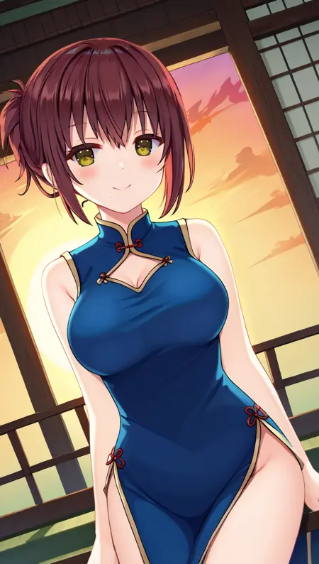 misaki kyouko, long yellow coat, dark blue button-up shirt, open coat, jeans