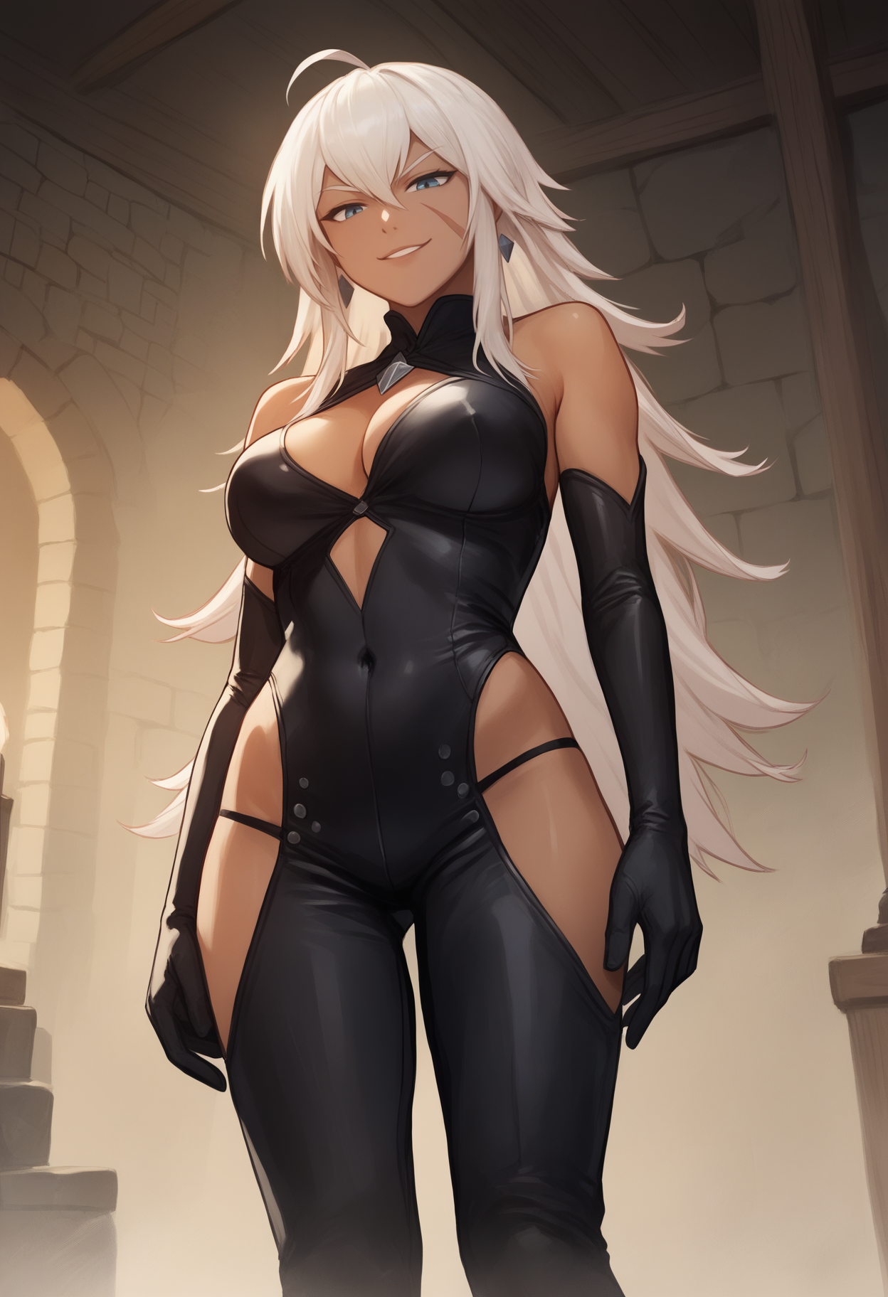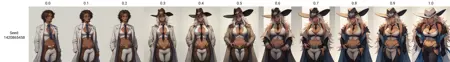 Higher strengths (0.9-1.0) will more accurately capture the face scar but may lead to the base outfits bleeding into the output.