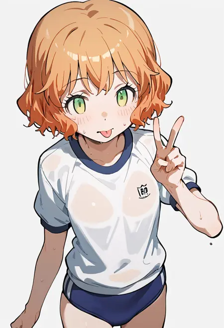プロンプト:倉橋ひな乃、オレンジ色の髪、ショートヘア、緑の目、