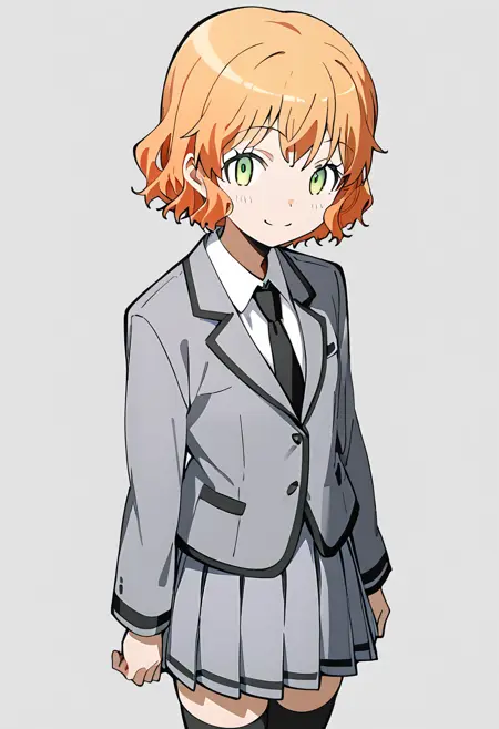 프롬프트:kurahashi hinano, 오렌지색 머리, 단발, 녹색 눈,