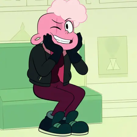scar, gloves, black gloves, black eyes, male focus, pink skin