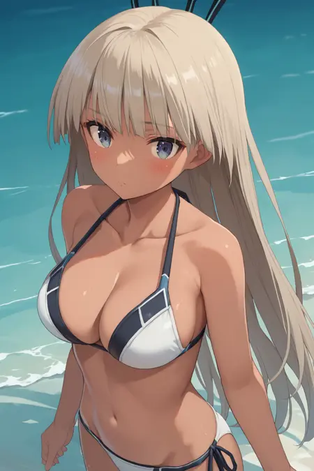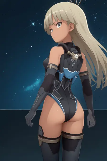 권장: 긴 머리, 검은 피부, 레오타드, 가슴 노출, 팔꿈치 장갑, 검은 허벅지 양말, ...