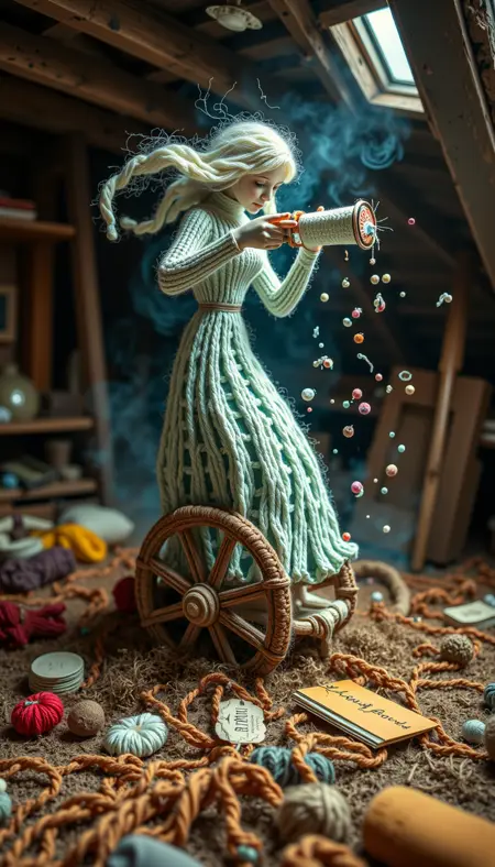 Made out of wool, a wizard casting a spell lora:W00lyW0rldFlux-NoCaption:1.0