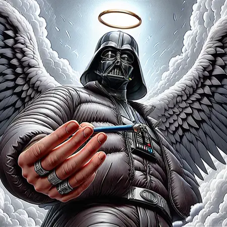 在MidJourney上绘制的吸烟天使的巴塞特犬