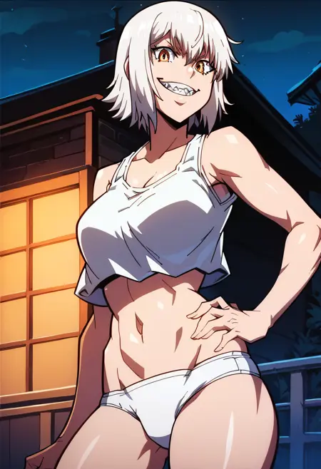 일상 복장: 흰색 크롭탑, 복부, 흰색 팬티, 속옷