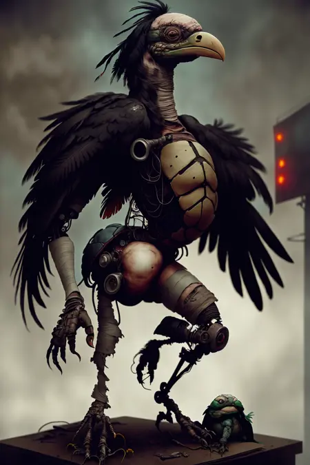 失落的伊甸园旨在探讨环境恶化、动物虐待以及全球崩溃后物种的持续生存等主题。该模型灵感源自《变异年零》及其各类设定手册,这些作品也探索了类似的主题,但本模型在训练过程中并未使用任何相关产品的艺术素材。