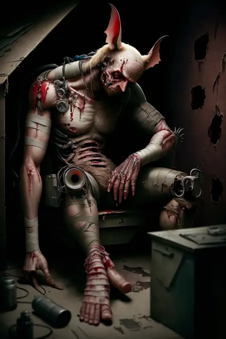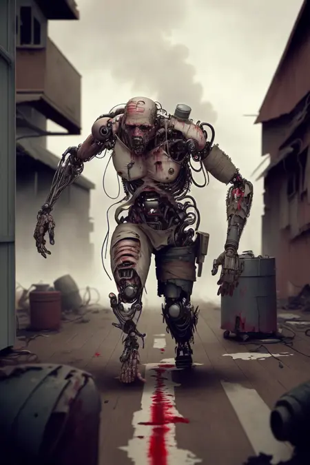 只需使用 l0st3d3n 标签,并搭配动物或人类,即可生成男性/女性及仿生人(尽管角色本身已有大量植入物和义体)。