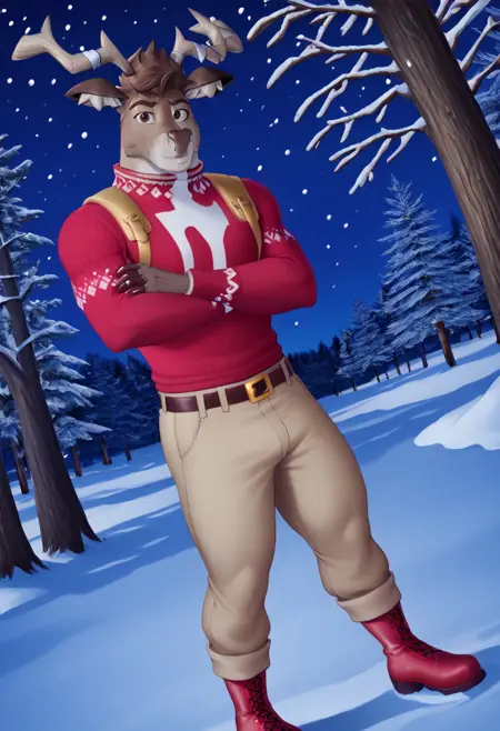 堡垒之夜中的Dolph | 所以,我制作这个模型时所用的大部分渲染图都没有在鹿角上添加杂物,原因是这样在建模时不会彻底破坏他的鹿角。