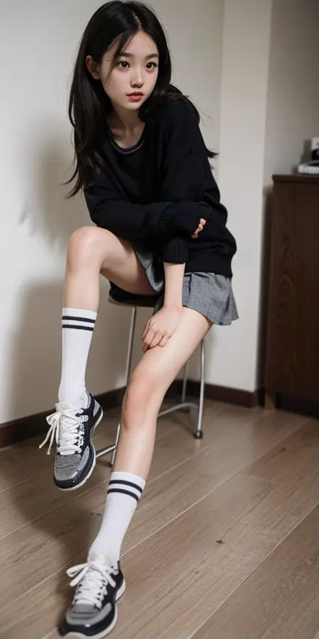 양말 길이를 나타내는 키워드인 kneehighs, ankle socks, thighhighs 등을 사용하여 보다 구체적으로 조절할 수 있습니다. striped를 추가하지 마세요. 그렇지 않으면 이미지의 다른 부분에 큰 영향을 줄 수 있습니다.