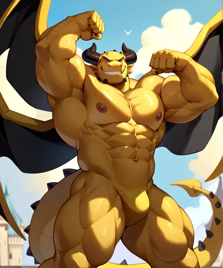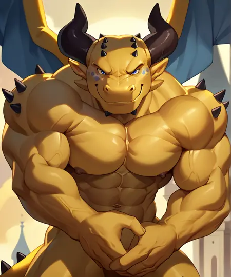 このモデルのプロンプトは「ルドルフ、黄色い肌、筋肉質、翼、2本の角、尾、ドラゴン」です。キャラクターは本来服を着ていないため、一部のチェックポイントではNSFWな部分が表示されることがあります。そのため、そうした部分が表示されないように、関連するプロンプトはネガティブ領域に入れてください。