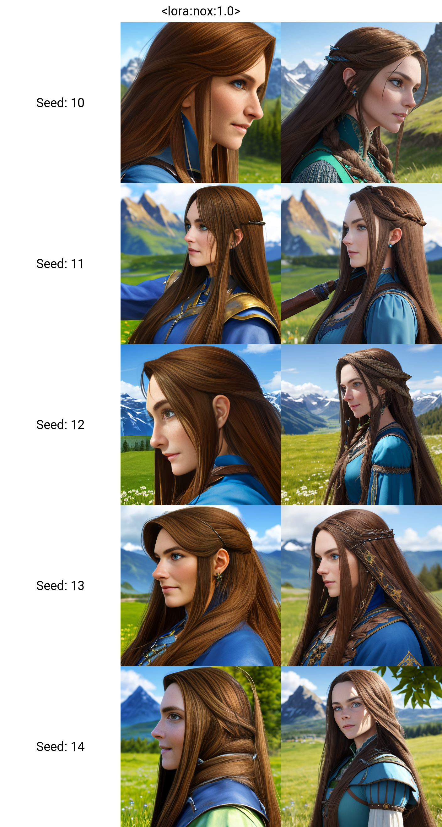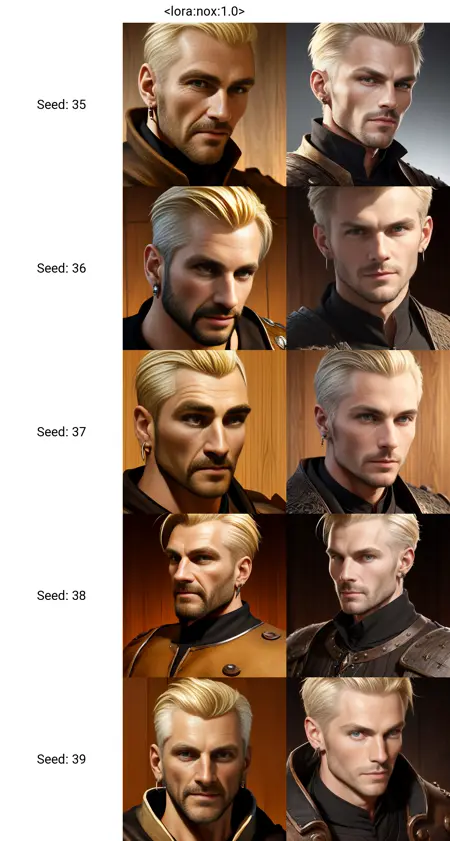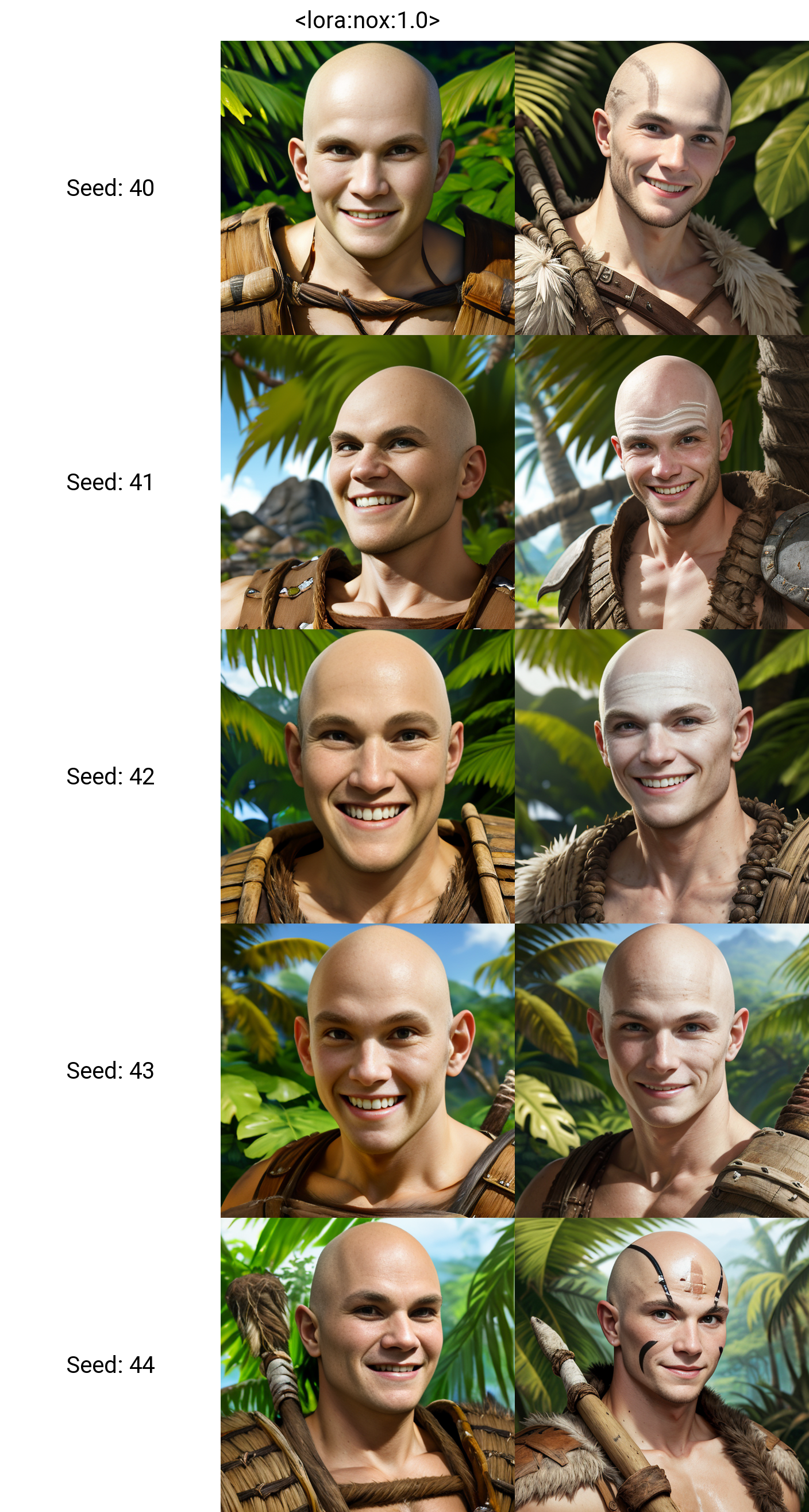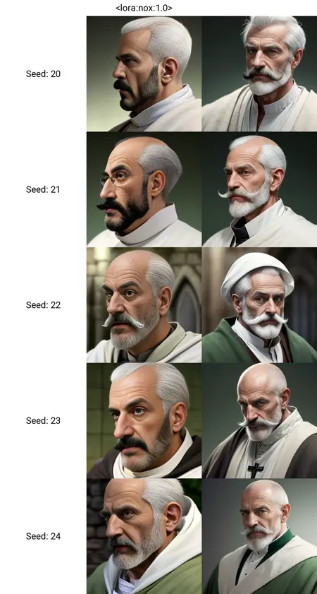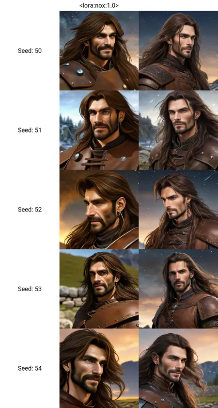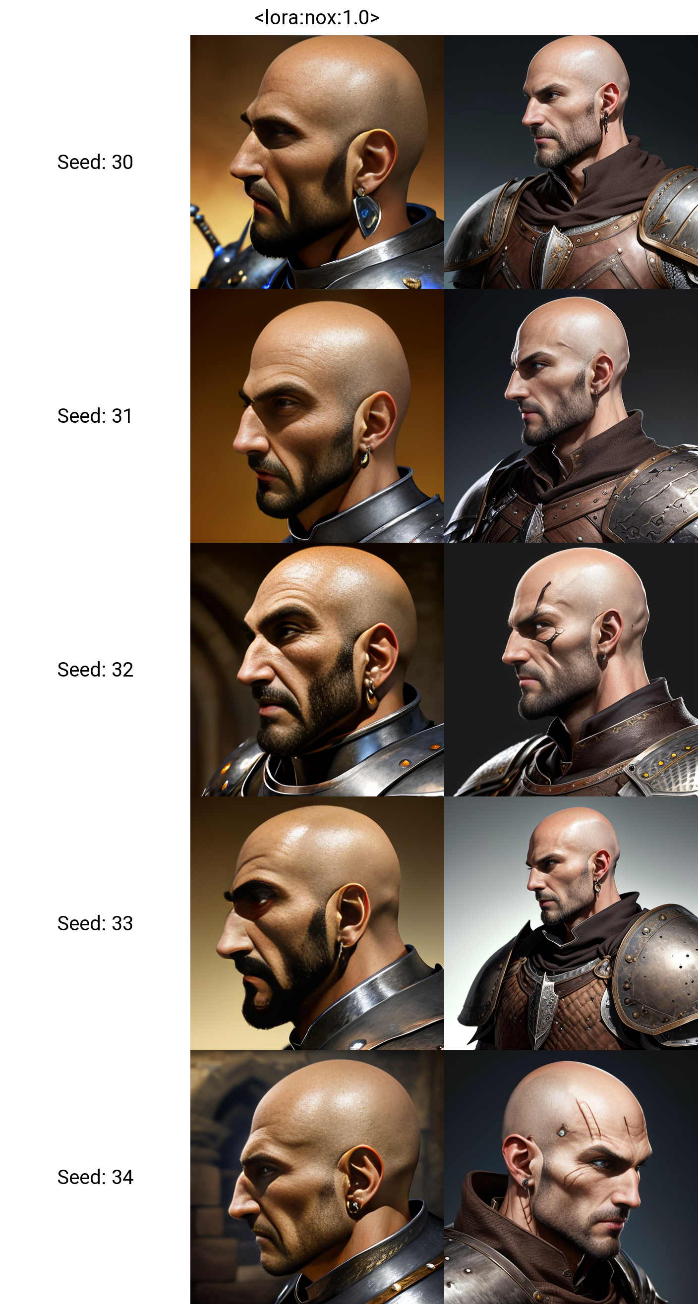 该 LoRa 模型由诺克斯(旧版角色扮演游戏)的所有人物肖像图片训练而成。它能在某种程度上重现诺克斯的艺术风格,但并非完美。