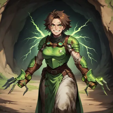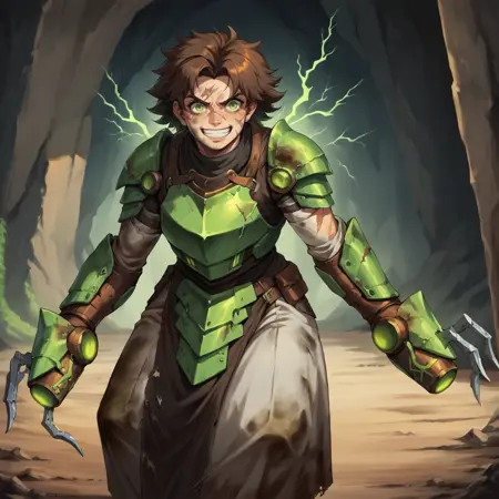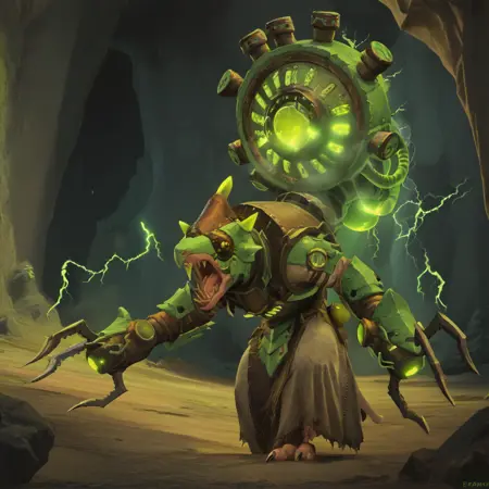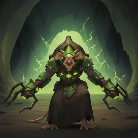 WarlockMaster, rat monster, clawed gauntlets, green electricity,