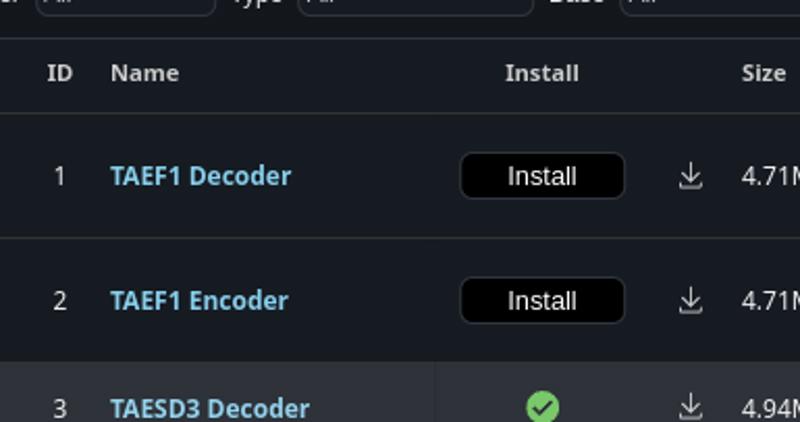 TeaF はマネージャーからインストールできます。ダウンロードするよりも速いです。ダウンロードする場合、このファイルを解凍して "/ComfyUI/models/vae_approx/" に配置してください。