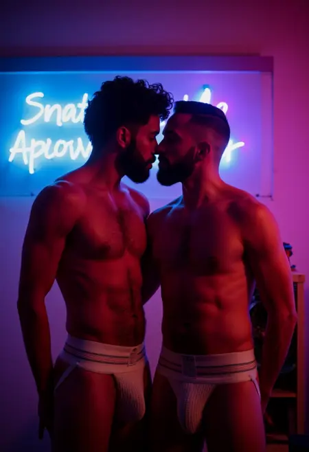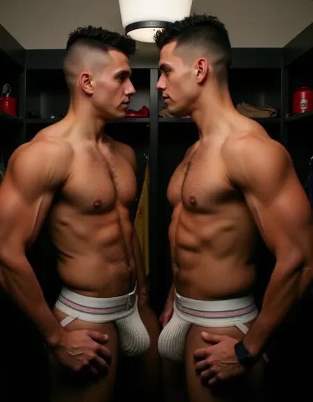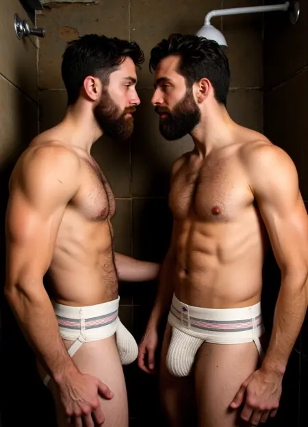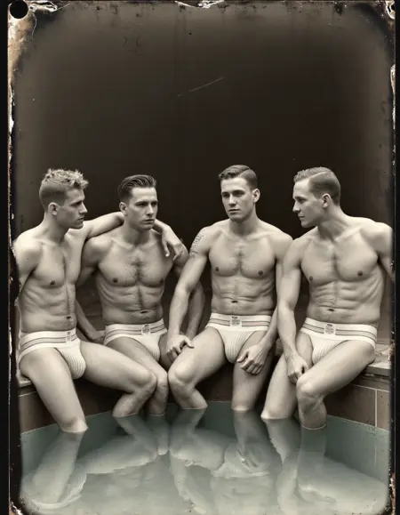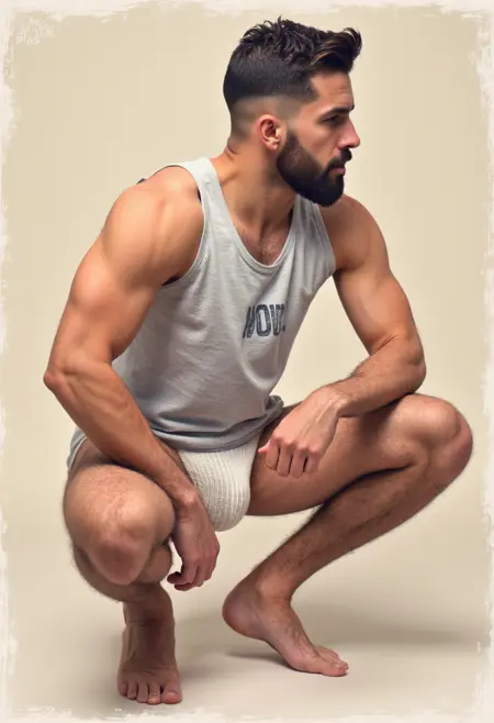 示例提示词:一张男人穿着脏旧白色内裤且有突出部位的照片