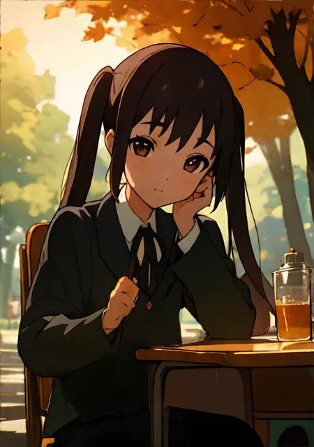 1girl、lora:RitsuTainaka:0.7、胡桃色の髪、茶金色の目、((学校制服))