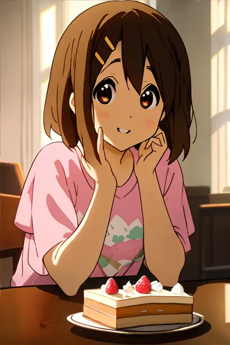 (笑顔)、歯を見せる、(ヘアピン)、k-on:1.15、lora:YuiHirasawa:0.65