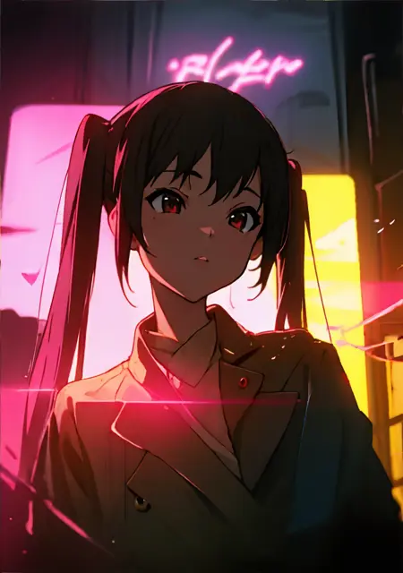 ポートレート、頭部と胸、少女、lora:AzusaNakano:1.5、黒髪、ツインテール2本