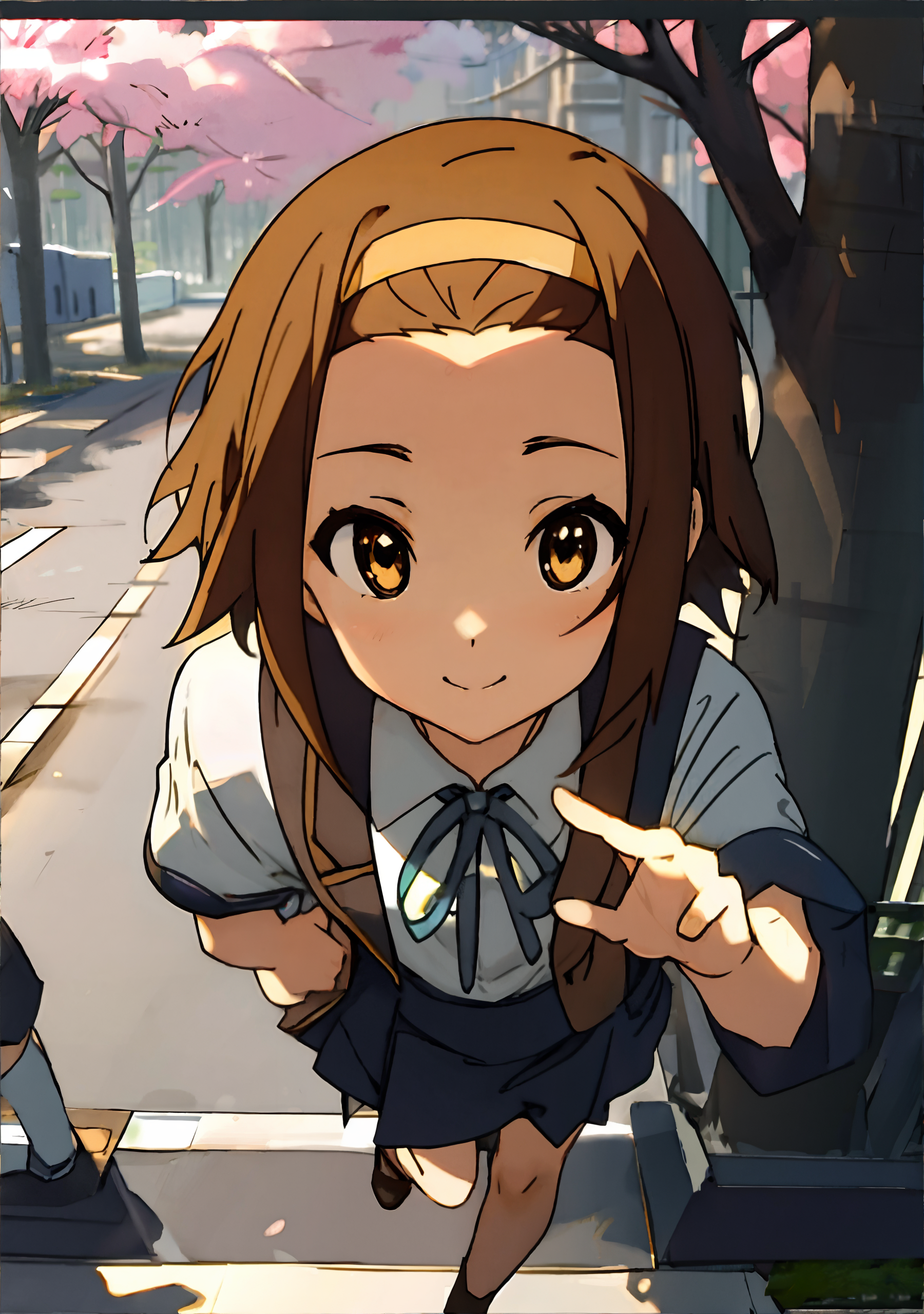 1girl,lora:RitsuTainaka:0.7,walnut hair, brown-golden eyes, ((school uniform))