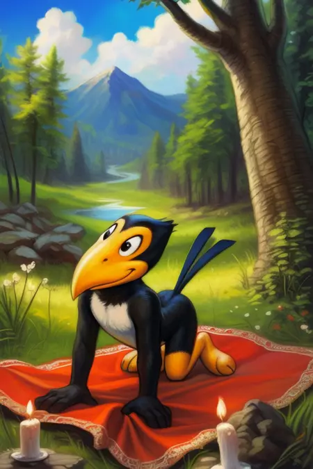 HeckleJeckle, raven, white belly, white sclera, black eyes, beak,
