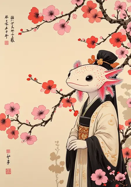 看起来Flux也未能完全理解蝾螈是什么。就像Stable Diffusion一样,它只知道这是一种粉红色的蝾螈。不过幸运的是,现在我们也能在Flux上生成蝾螈了!