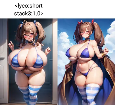 the strength of the lora can be controlled by changing the strength of (chibi,shortstacks)